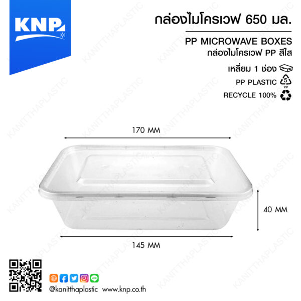 กล่องไมโครเวฟเหลี่ยม 1 ช่อง 650 มล.